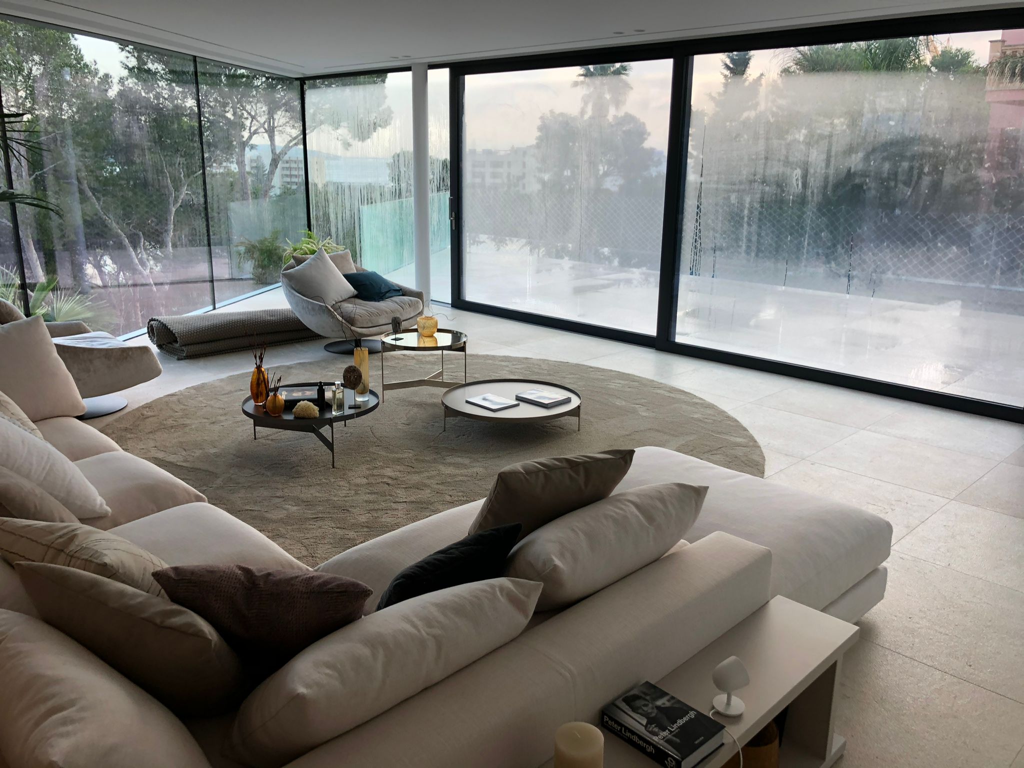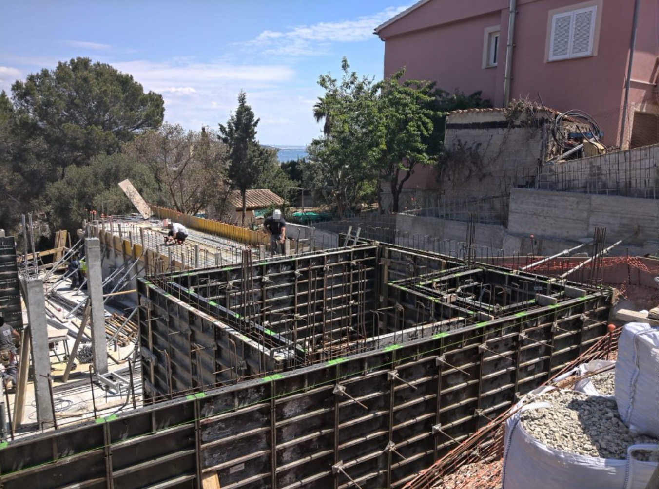 Perched in the elevated area of Magaluf, the exclusive villa on Carrer Aligues represents a triumph of modern design and engineering. This project, defined by its sharp angles and striking architectural features, presented unique challenges due to its complex structural composition—a bold mix of steel and predominantly concrete elements.
