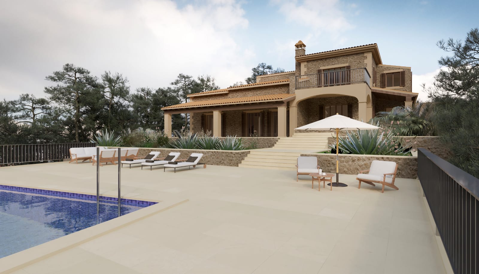 The pool and terrace were meticulously designed to harmonize with the natural beauty of the surroundings. Using carefully selected materials, such as natural stone and earthy tones that mirror the colors of the sky and the lush landscape, we created a tranquil retreat that seamlessly blends with the environment. The result is an outdoor space that exudes serenity, inviting relaxation and a deep connection to nature.